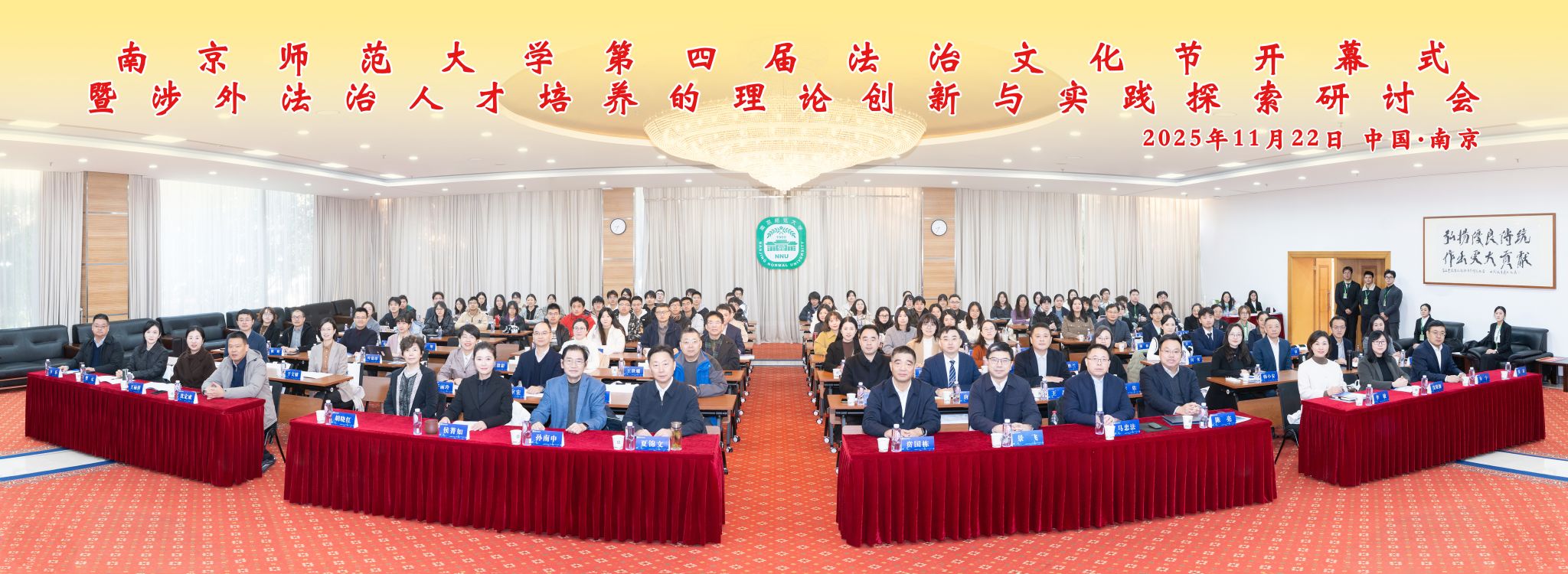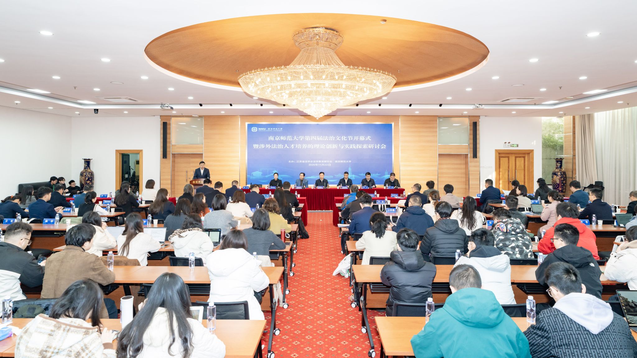 为进一步深入学习贯彻习近平法治思想,全面系统落实党的二十大以及二十届三中、四中全会精神,切实把习近平总书记关于加强法治宣传教育的重要指示精神落到实处,持续提升校园尊法学法守法用法的意识和能力,南京师范大学策划举办了第四届校园法治文化节。2025年11月22日由江苏省法学会法学教育研究会和南京师范大学共同主办的南京师范大学第四届法治文化节开幕式在南京师范大学仙林校区隆重举行。