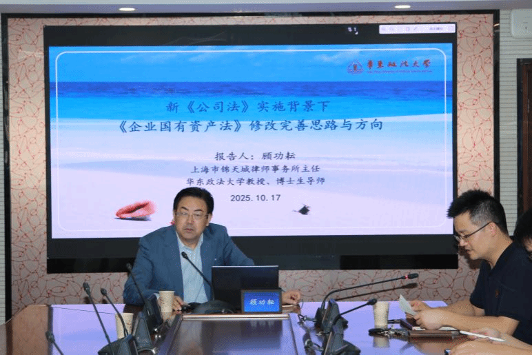 2025年10月17日下午,以“新《公司法》实施背景下《企业国有资产法》修改完善重点与方向”为主题的学术讲座,在南京师范大学仙林校区行敏楼434会议室举行。本次讲座特邀上海市锦天城律师事务所主任、原华东政法大学副校长,兼任中国法学会商法学研究会副会长、中国法学会经济法学研究会副会长、中国国际经济贸易仲裁委员会仲裁员顾功耘教授担任主讲嘉宾,我院倪斐教授担任主持人。来自各年级的本硕博学子到场学习,共同聆听了这场关于新时代背景下国有企业资产制度发展的学术盛宴。