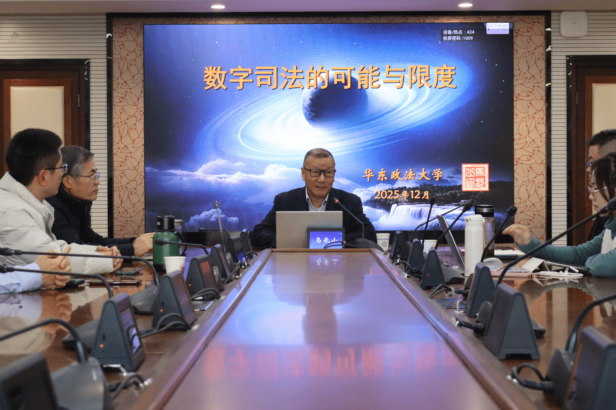 2025年12月6日下午,以“数字司法的可能与限度”为主题的学术讲座在我校仙林校区行敏楼434会议室举行。本次讲座由华东政法大学数字法治研究院马长山教授主讲,我院方乐教授担任主持人,何柏生教授、马丁教授担任与谈人,本硕博学子到场聆听。
