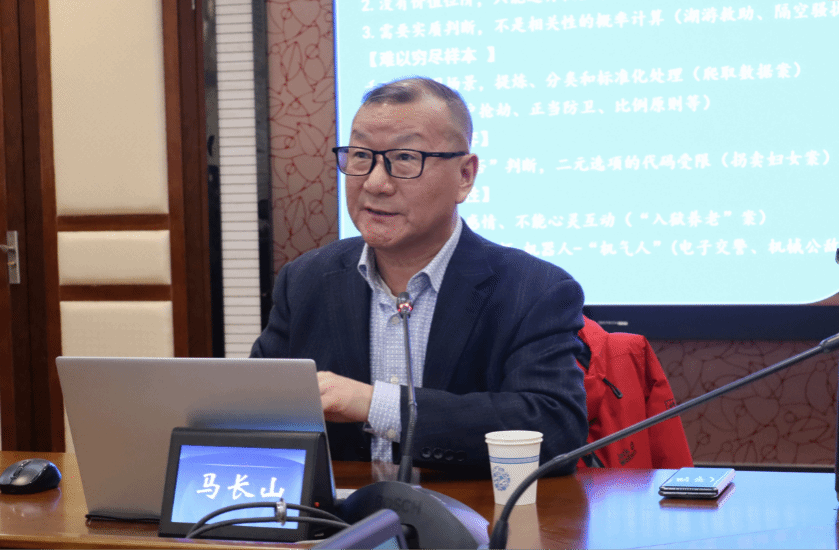 讲座伊始,马长山教授指出本次主题的讨论背景,即随着数字时代的到来,法学研究的资料来源已经超出既有的经典文献,转而向司法实践在应用数字技术过程中涌现的大量创新成果中提炼。为此,马长山教授结合国内外关于数智应用的重要文件、司法的数字化创新实践以及相关热点事件与案例,从预期立场、可能边界和内在限度三个方面讲解,具体展开数字司法的可能与限度图景。