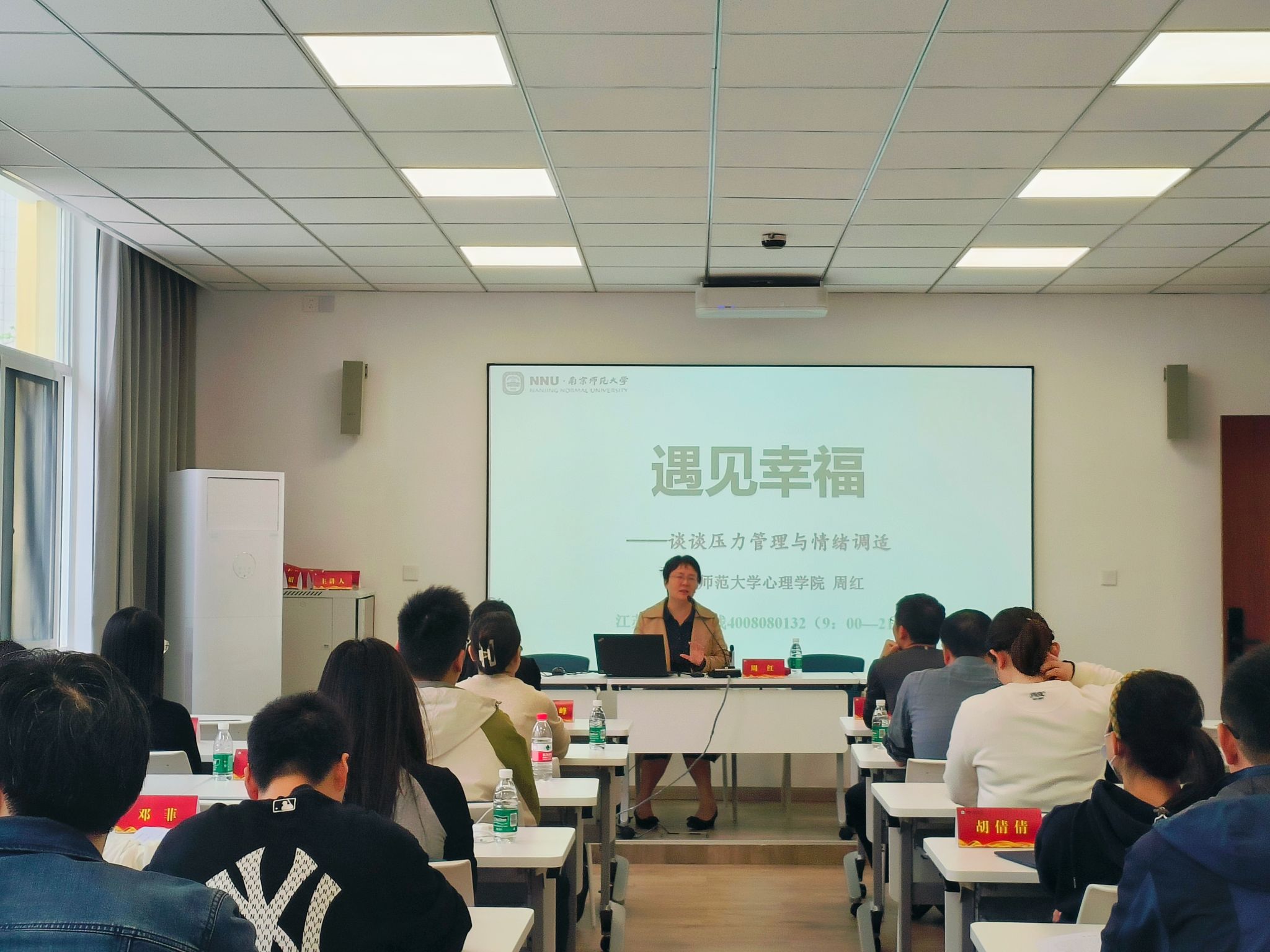 为增强法官心理调节能力,缓解工作压力,增强法院队伍的凝聚力和战斗力,4月12日下午,南师大心理学院周红教授为全体学员开展以“遇见幸福——谈谈压力管理与情绪调适”为主题的心理健康辅导专题讲座,对法官心理健康的重要性、心理问题表现及心理调适途径进行详细讲解。