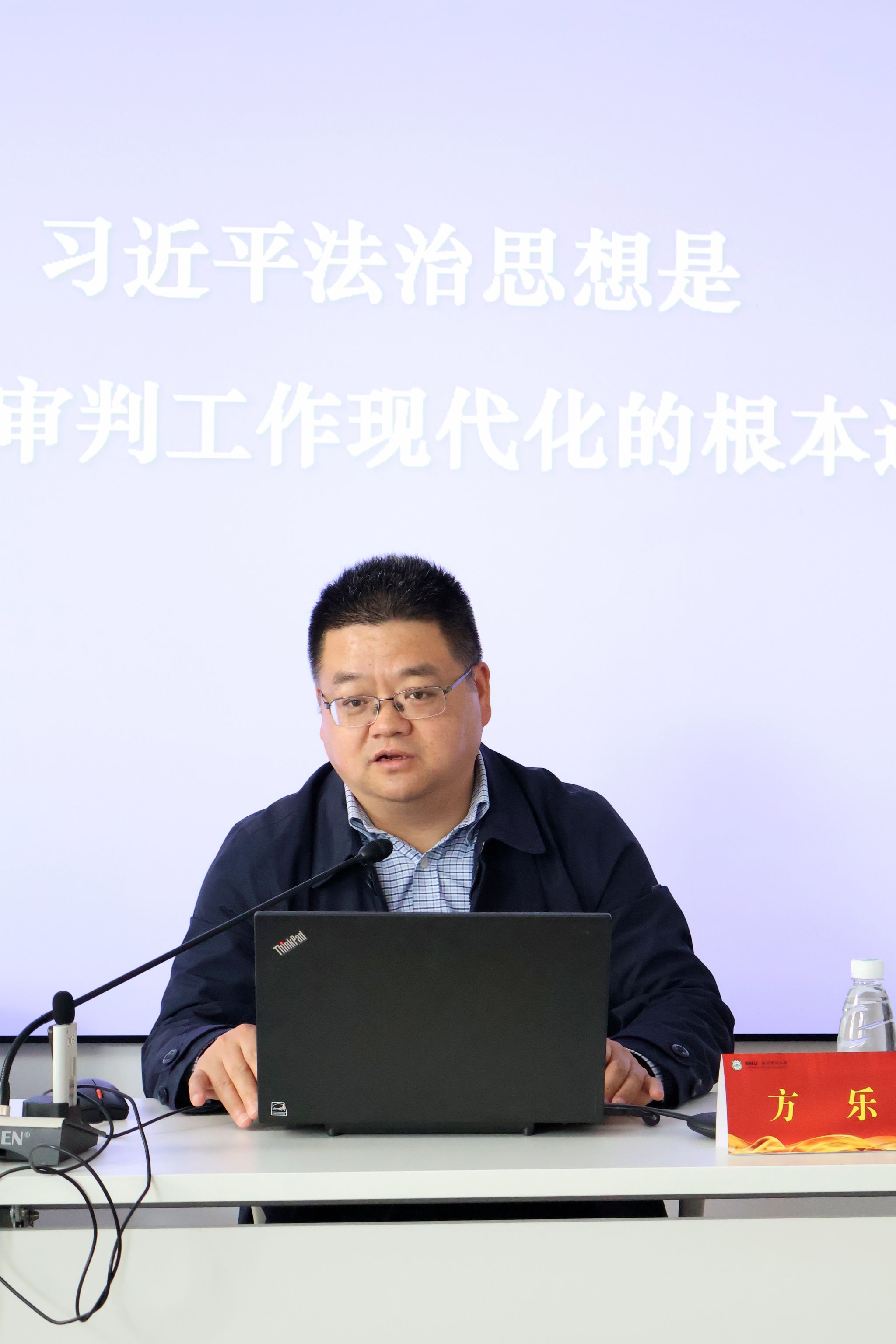 4月10日下午,南师大法学院院长方乐教授以“习近平法治思想对司法改革与司法现代化的理论指导解读”为主题,全面介绍习近平法治思想的内涵,深刻剖析司法改革的法治底蕴和司法现代化的趋势走向。