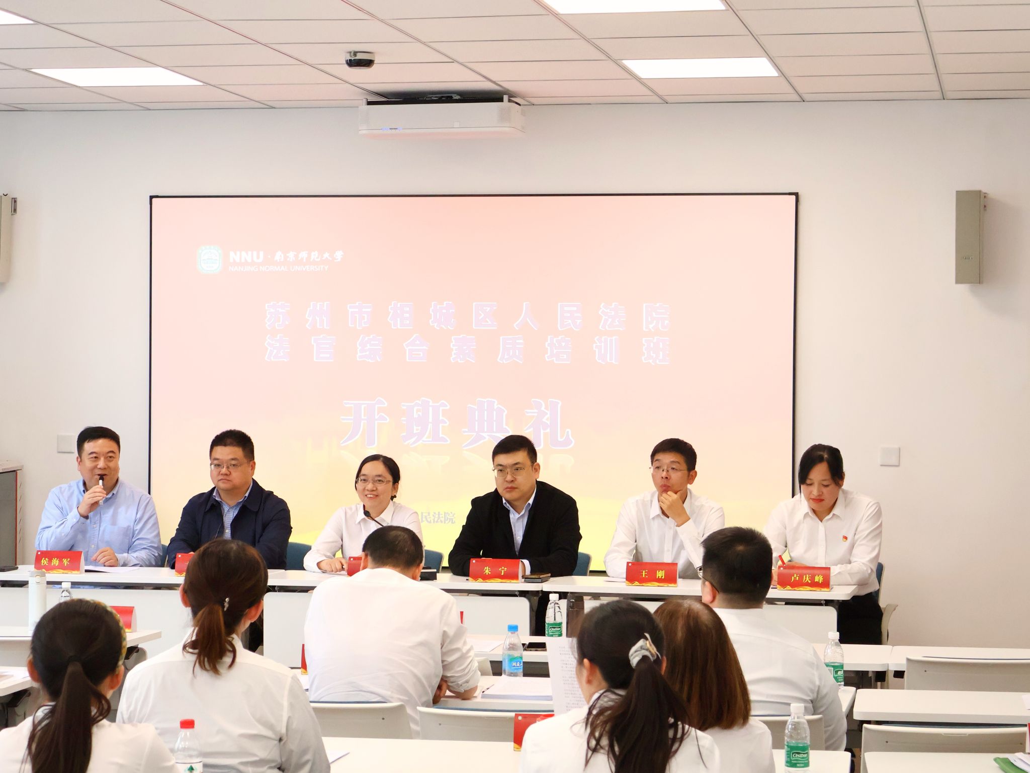 4月10日下午,苏州市相城区人民法院院长俞水娟、南京师范大学法学院党委书记朱宁、法学院院长方乐等领导共同出席开班仪式。朱宁书记对苏州市相城区人民法院俞院长一行的到来表示热烈欢迎,详细介绍南师大法学院的情况和本次培训班课程安排,并预祝本次培训取得圆满成功。俞水娟院长对南京师范大学法学院的用心筹备表示了感谢,高度认可培训班时间安排和课程内容,希望各位学员能在本次培训中认真完成学习任务,提升自身综合素质和工作能力。