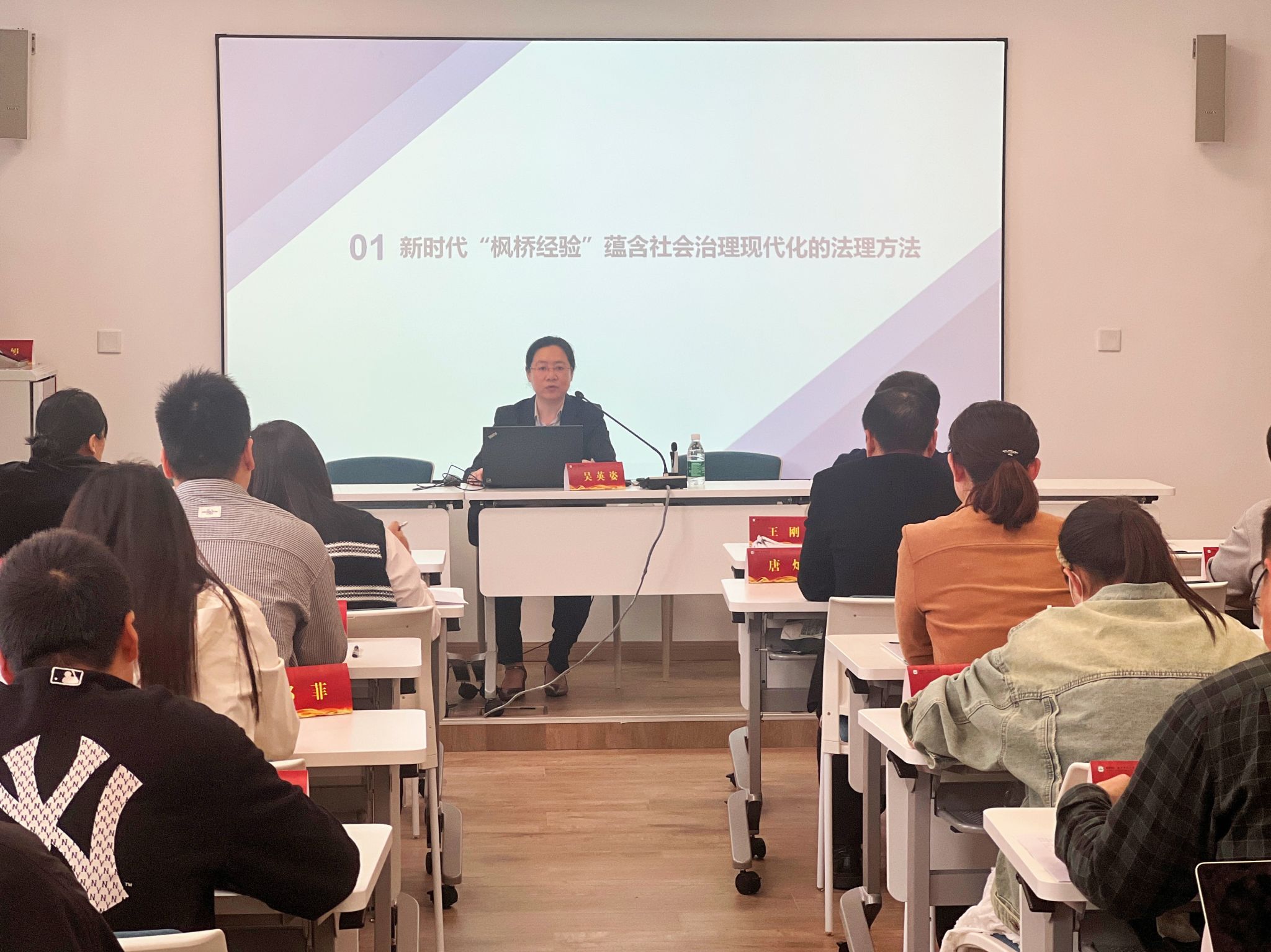 4月11日下午,南师大法学院吴英姿教授以“新时期人民法院推进‘枫桥经验’的实践与纠纷化解能力提升”为主题,从新时代“枫桥经验”蕴含社会治理现代化的法理方法、搭建风险的公私法合作治理的多元解纷机制、司法确认程序制度功能重识与模式创新、完善诉讼程序规则,提高司法实质化争议的制度效能、以培育程序思维为重点促进法官司法能力现代化等方面探索“让人民群众在每一个司法案件中感受到公平正义”的司法能力现代化建设之路。