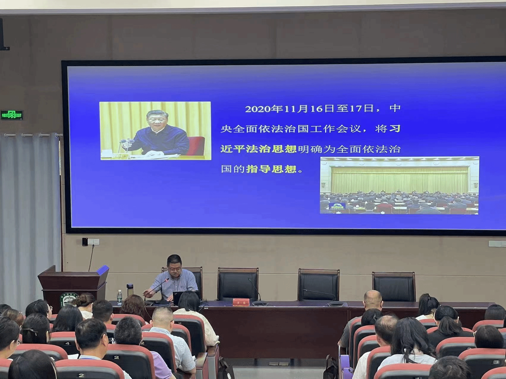 南师大法学院院长方乐教授围绕“习近平法治思想的内涵、发展和实践要求”,从习近平法治思想的提出、核心要义、逻辑体系和实践要求四个方面,结合习近平法治思想的新发展和法治中国建设的新需求,进行了系统性的讲解。